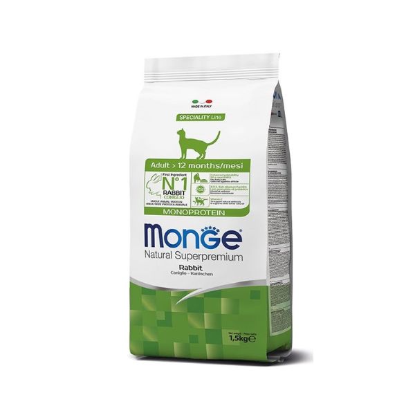 מזון יבש סופר פרימיום לחתולים בטעם ארנבת, מסדרת Monge Natural Superpremium Monoprotein, המיוצר באיטליה באיכות הגבוהה ביותר.