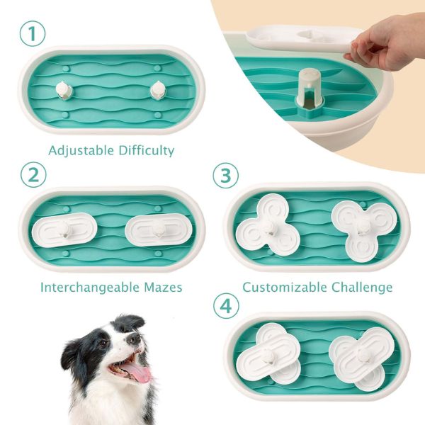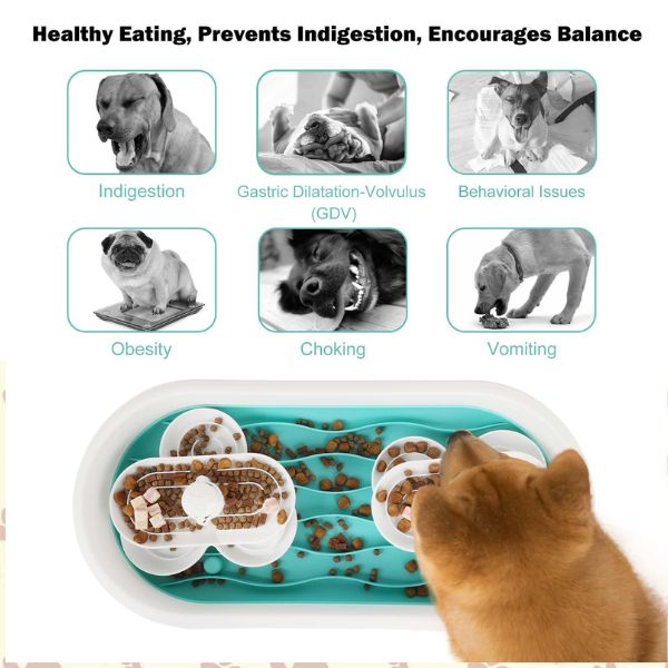 - מעוצבת עם צלחת גל ו־4 מבוכים מתחלפים להאטת קצב האכילה