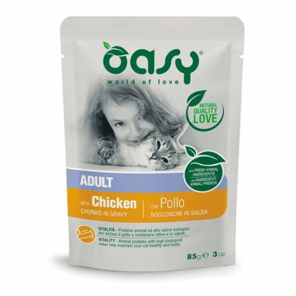 Oasy פאוץ' לחתולים 85 גרם - נתחי עוף בציר עשיר